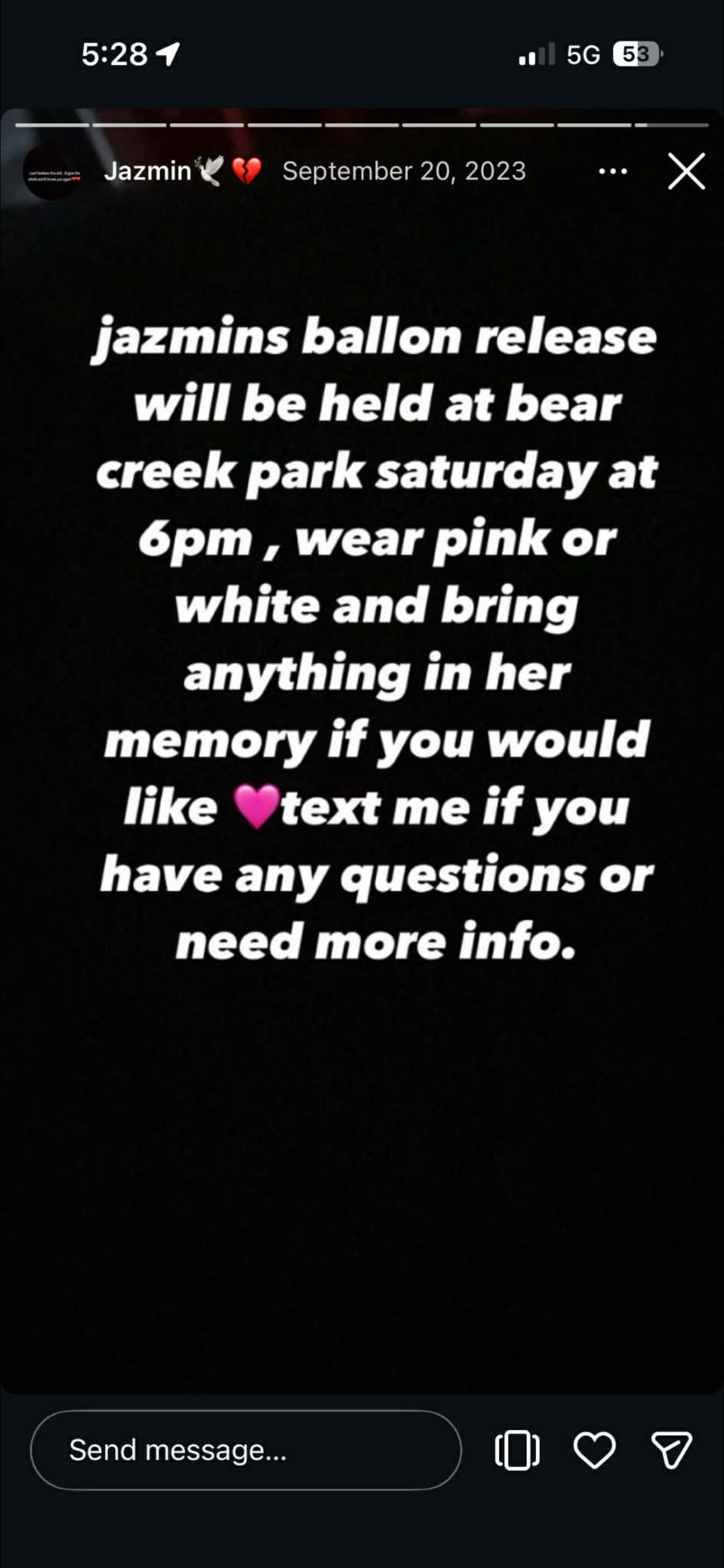 The balloon release was announced on September 20, 2023. However, official missing person materials continue to list Jazmin Perez as missing since late 2022, with the Harris County Sheriff’s Office previously requesting information regarding her whereabouts.